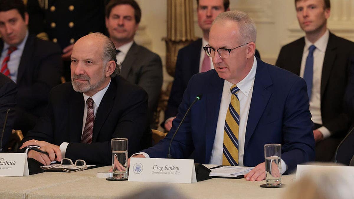 SEC Commissioner Greg Sankey speaks during a roundtable discussion on college sports in the East Room of the White House on March 6, 2026, as Commerce Secretary Howard Lutnick looks on. The Trump administration hosted the event titled “Saving College Sports” with leaders from the Power Four conferences, media executives and former coaches. (Anna Moneymaker/Getty Images)